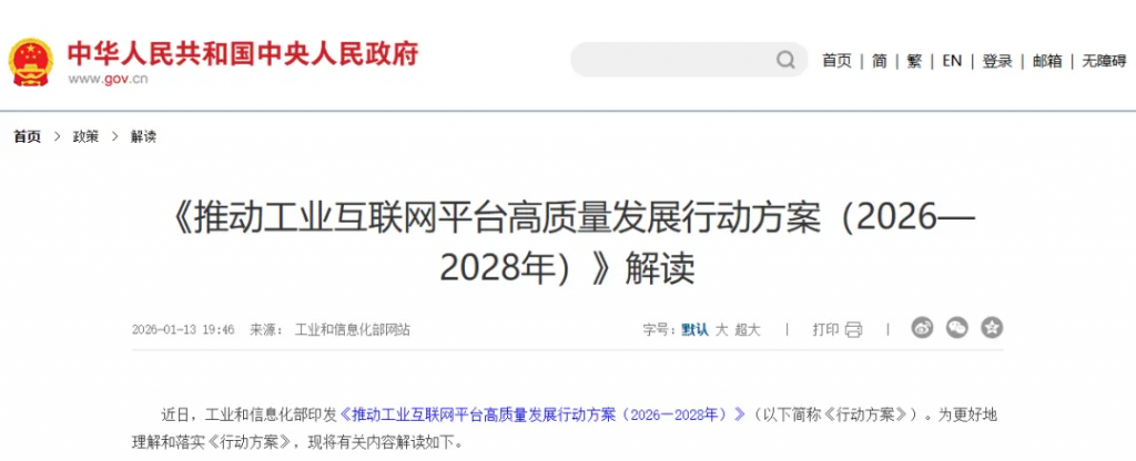 2026年伊始,工信部接连发布《推动工业互联网平台高质量发展行动方案(2026—2028年)》与《“人工智能+制造”专项行动实施意见》。