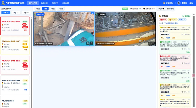 2. 远程多作业监控,提升监护效率:依托先进的人机协同架构,单名监护人员可同时管控多个作业现场,彻底打破传统“一人一点”的监护局限,大幅降低企业监护人力成本,同时让监护覆盖更全面、响应更迅速、效率更高效。
